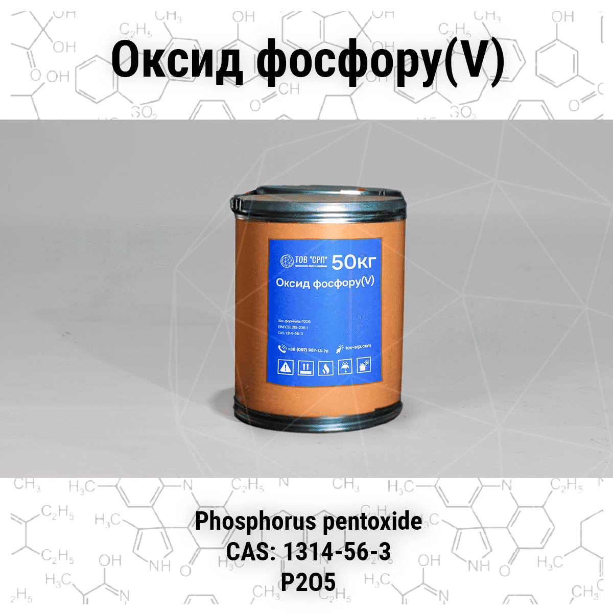 ТОВ СРП пропонує приємні ціни на оксид фосфору(V) промислової та лабораторної чистоти, гарантуючи якість і стабільність постачання. Співпраця з нами означає надійність, доступність і впевненість у результатах ваших виробничих і наукових процесів.