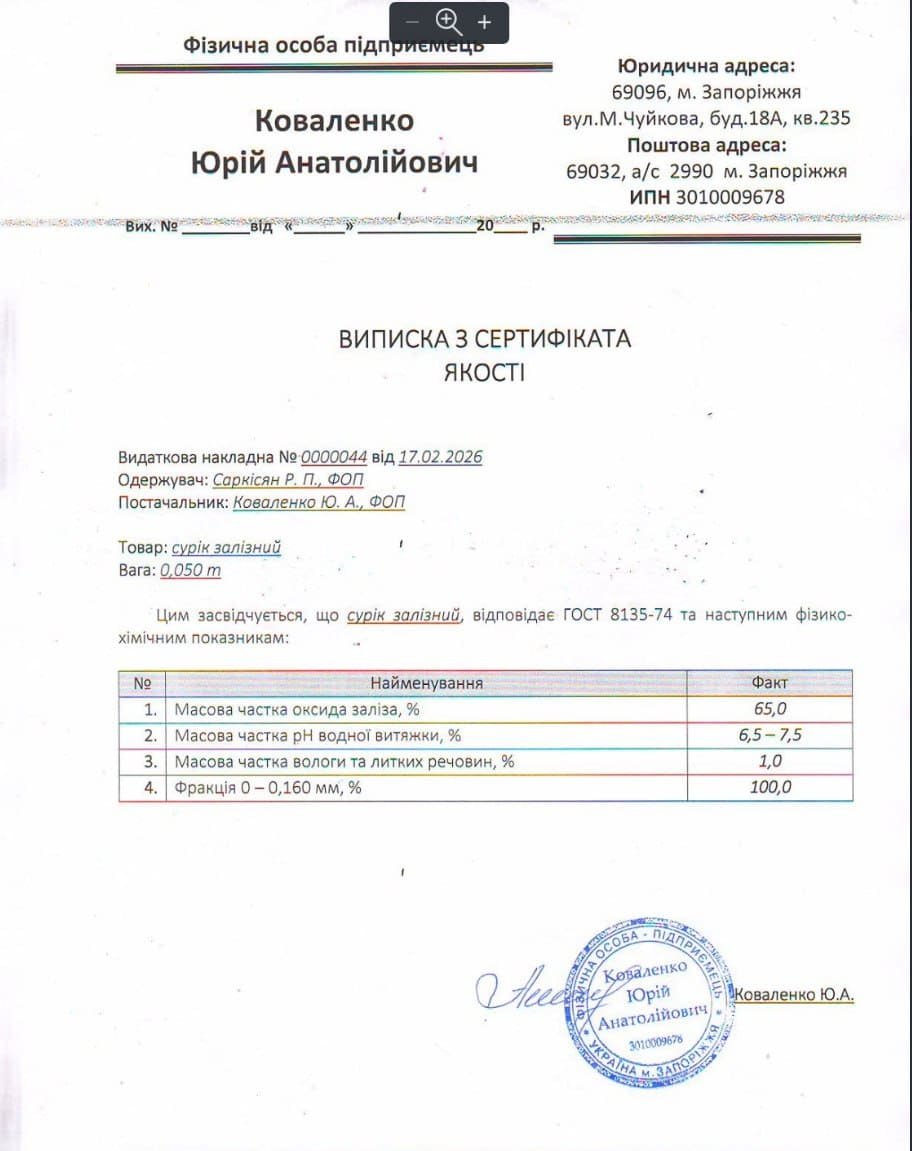 Оксид заліза (III) 65% — економічне рішення для будівельних та масових задач.